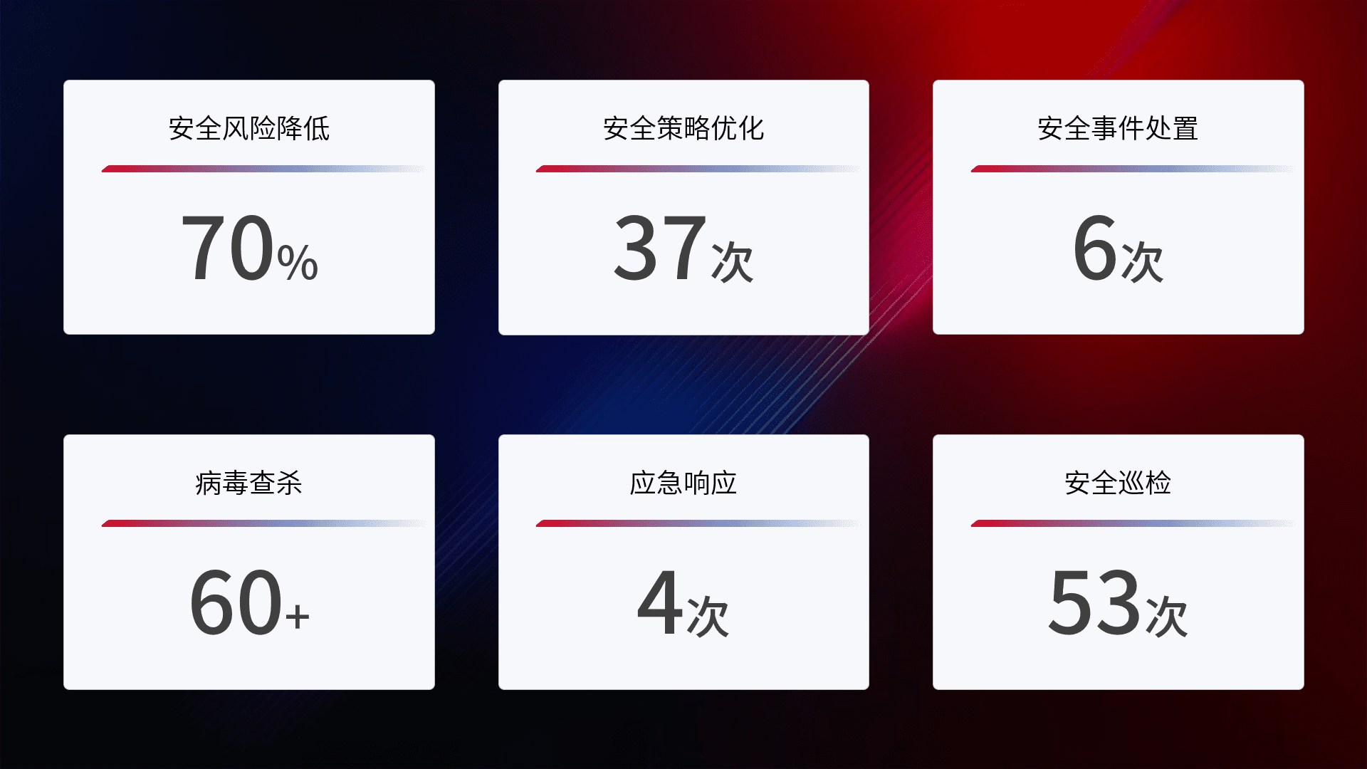综合报告与文档服务: 定期提供安全事件处置报告、、、、周/季度总结报告和年度总结报告;详尽的文档服务可帮助客户了解网络安全状况,,支持决策制定和流程优化。。。。
